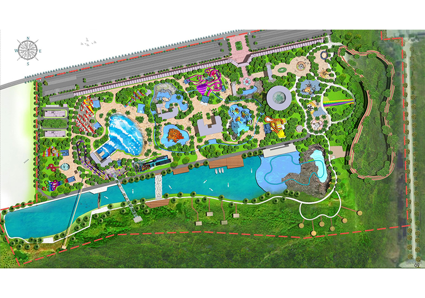 項目位于邳州市鐵富鎮(zhèn)艾山景區(qū)旁,北臨 310 國道,東起艾山景區(qū)北門,南側(cè)邊界為山腳現(xiàn)有河道向南 60 米,總用地 43.5 公頃。項目游樂主體分為水公園和陸公園兩大部分,與艾山風(fēng)景區(qū)相得益彰,相互補充,使艾山景區(qū)可賞可游可樂可憩,打造艾山文旅版塊中的靚麗一筆。