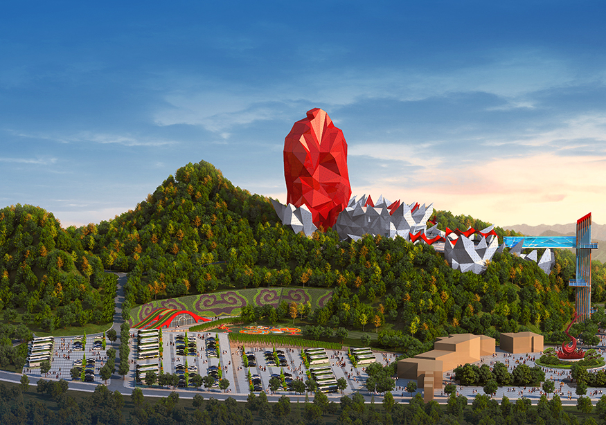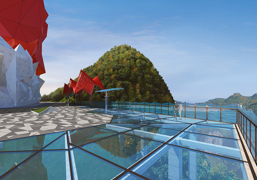 項(xiàng)目選址環(huán)境清雅舒適,設(shè)施齊全。放眼望去,酒店恍若一顆碩大的朱砂紅寶石橫空出世,鑲嵌在山巒之巔,高聳入云,直取天際,十分驚艷。在懸崖棧道盡頭有升降電梯直達(dá)酒店,為來(lái)此旅游的游客提供了更具文化品位與更貼心的度假空間。