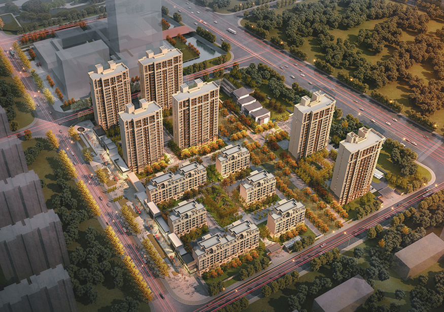 項目44號地塊代征城市道路用地面積為23400㎡,代征城市綠化用地面積為9400㎡,建筑限高最高為80m,不超過25層,地塊內(nèi)計容面積不大于171400㎡。商業(yè)計容面積不大于總計容建筑面積的3.5%,其中底層商業(yè)面積約為6000㎡ ,配套公建面積約為3830㎡(44,47#同屬一個項目)。